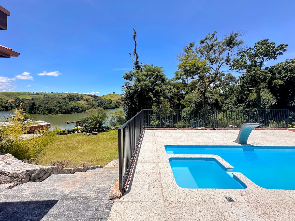 Perfect damfront huisje. Ideaal voor rust met familie en vrienden (maximale capaciteit 9 personen). Huis met 3 slaapkamers (allemaal met airconditioning) en twee badkamers (intern en extern), smart-tv, barbecue, houten forna, volledige keuken, wifi. Zwembad met hydro, speeltuin. We hebben drijvend dek en dam oprit, neem je boot, jetski of kajak mee. We zijn huisdiervriendelijk Gemakkelijke toegang via de Tamoios snelweg, in de buurt van de Rosa Mística-kerk.
