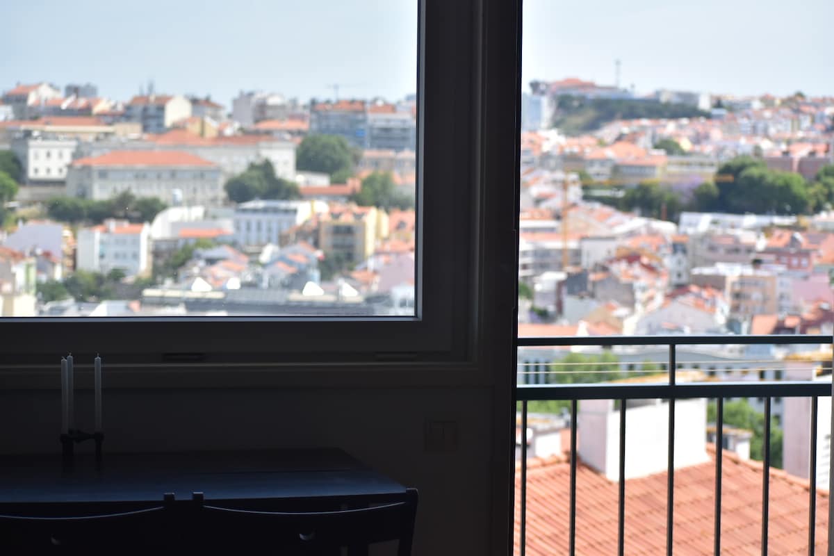 Een stijlvol appartement met 1 slaapkamer op het dak met een eigen terras en een prachtig uitzicht op het kasteel van Sao Jorge en de rivier de Taag. Gelegen in het hart van Lissabon, in Marques de Pombal dicht bij het karakteristieke park Eduardo VII en Avenida da Liberdade. ⚠️HOUD ER REKENING MEE dat er bouwwerkzaamheden naast de deur zijn en overdag luidruchtig kunnen zijn ** Het appartement op het dak is bereikbaar via een wenteltrap buiten. Houd er rekening mee dat dit appartement door de trap niet geschikt is voor personen met gereduceerde mobiliteit.