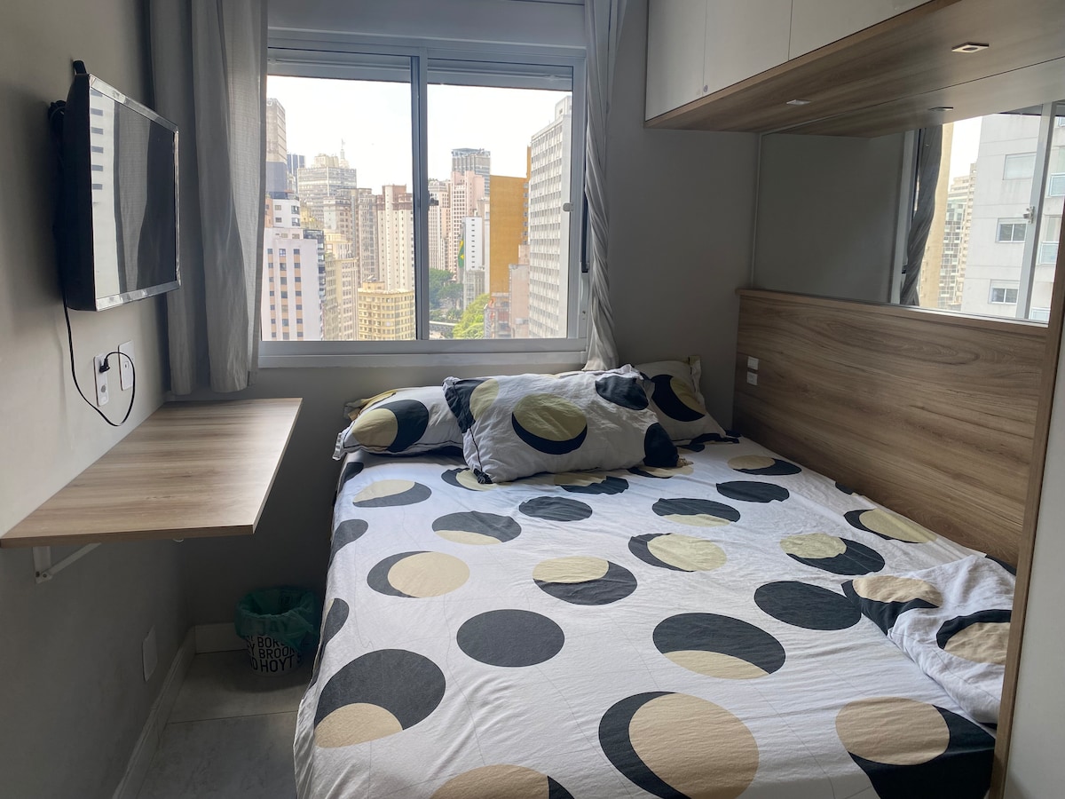 Slaapkamer in gedeeld appartement, slaapkamer met tweepersoonsbed. Vlakbij de metro Anhangabaú en de belangrijkste bezienswaardigheden , Let op , ik accepteer geen huisdieren