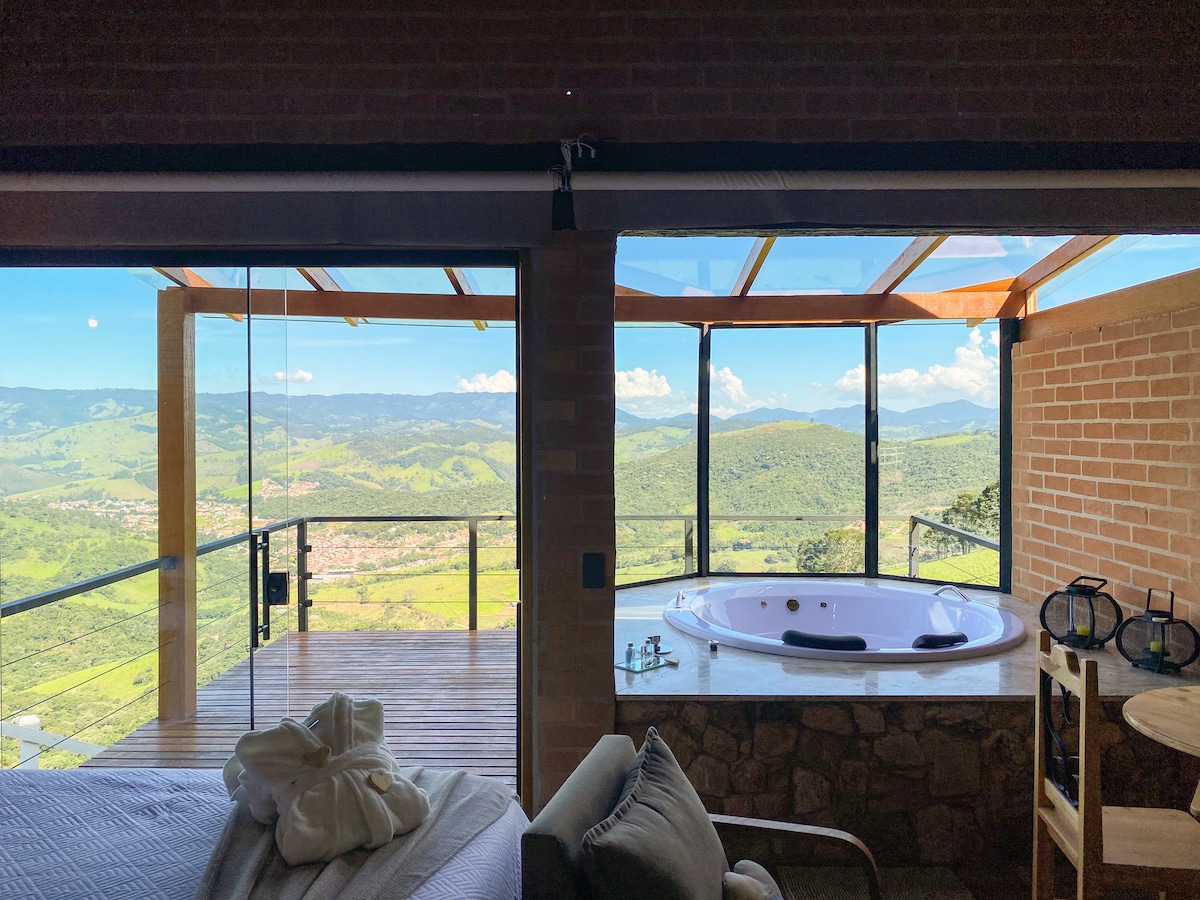 Ontdek de charme van Serra da Mantiqueira in deze hut die is ontworpen zodat je de zonsopgang kunt aanschouwen zonder uit bed te hoeven stappen. Kom tot rust in onze verwarmde spa, sterrenkijken op het boven- en swingende netwerk. De cabana heeft een geïntegreerde kamer met een knus queensize bed. In de woonkamer/keuken biedt een super comfortabele futon plaats aan nog twee gasten, waardoor de ervaring ideaal is voor gezinnen. De accommodatie heeft ook paden en kleine watervallen.