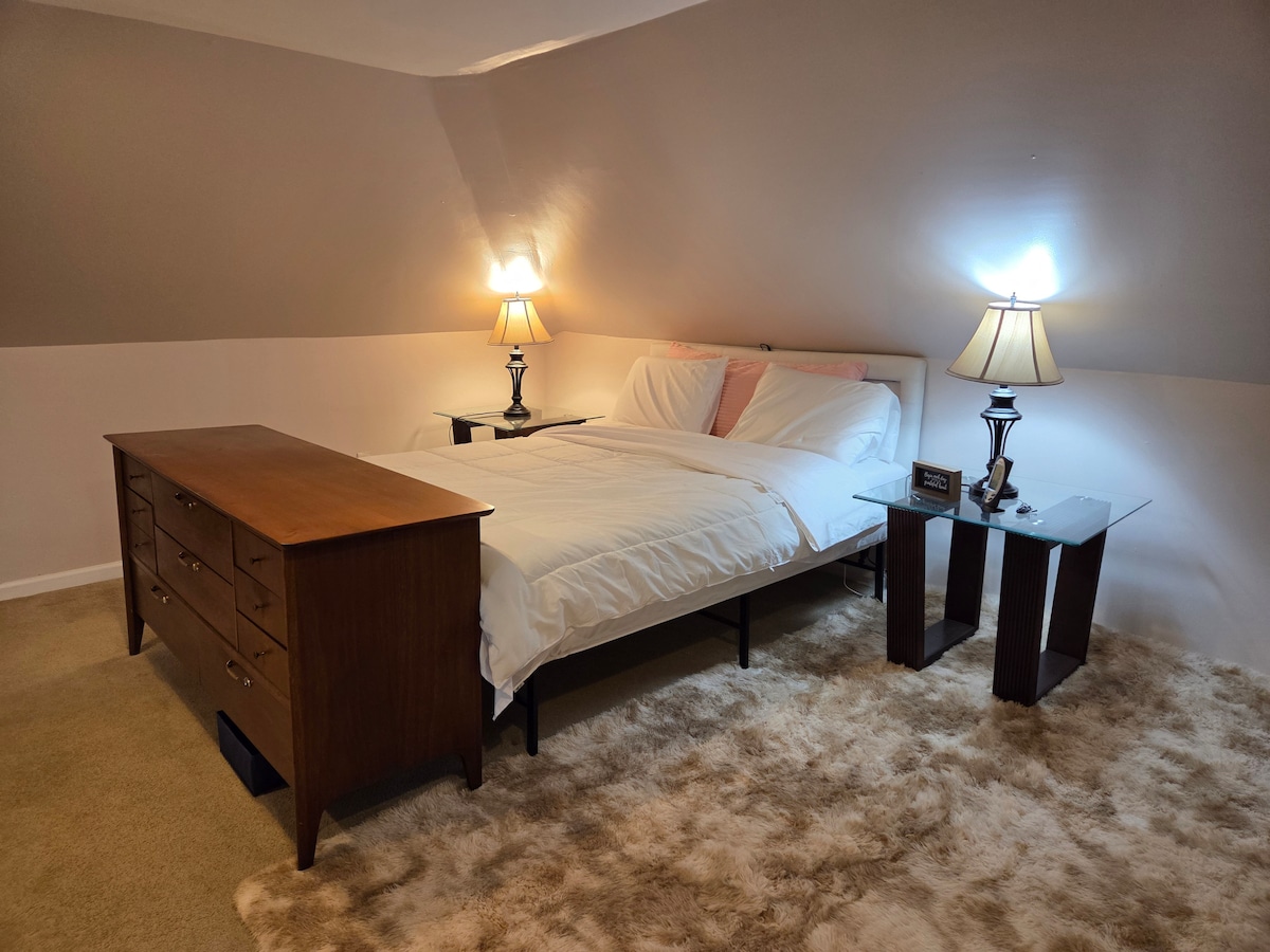 Lichte, rustige 2BR-eenheid net buiten Albany's levendige Center Square op loopafstand van Washington Park, lokale cafés, restaurants en attracties in de binnenstad. Of je nu alleen reist, met een stel of met het gezin, je vindt alles wat je nodig hebt voor een ontspannen verblijf. Geniet van je ochtendkoffie op het privéterras met vogelgezang op de achtergrond, rust in een gezellig queen- of full bed en geniet van zelf inchecken, snelle wifi, klimaatbeheersing met airconditioning en verwarming en privéparkeergelegenheid in de garage direct naast de deur.