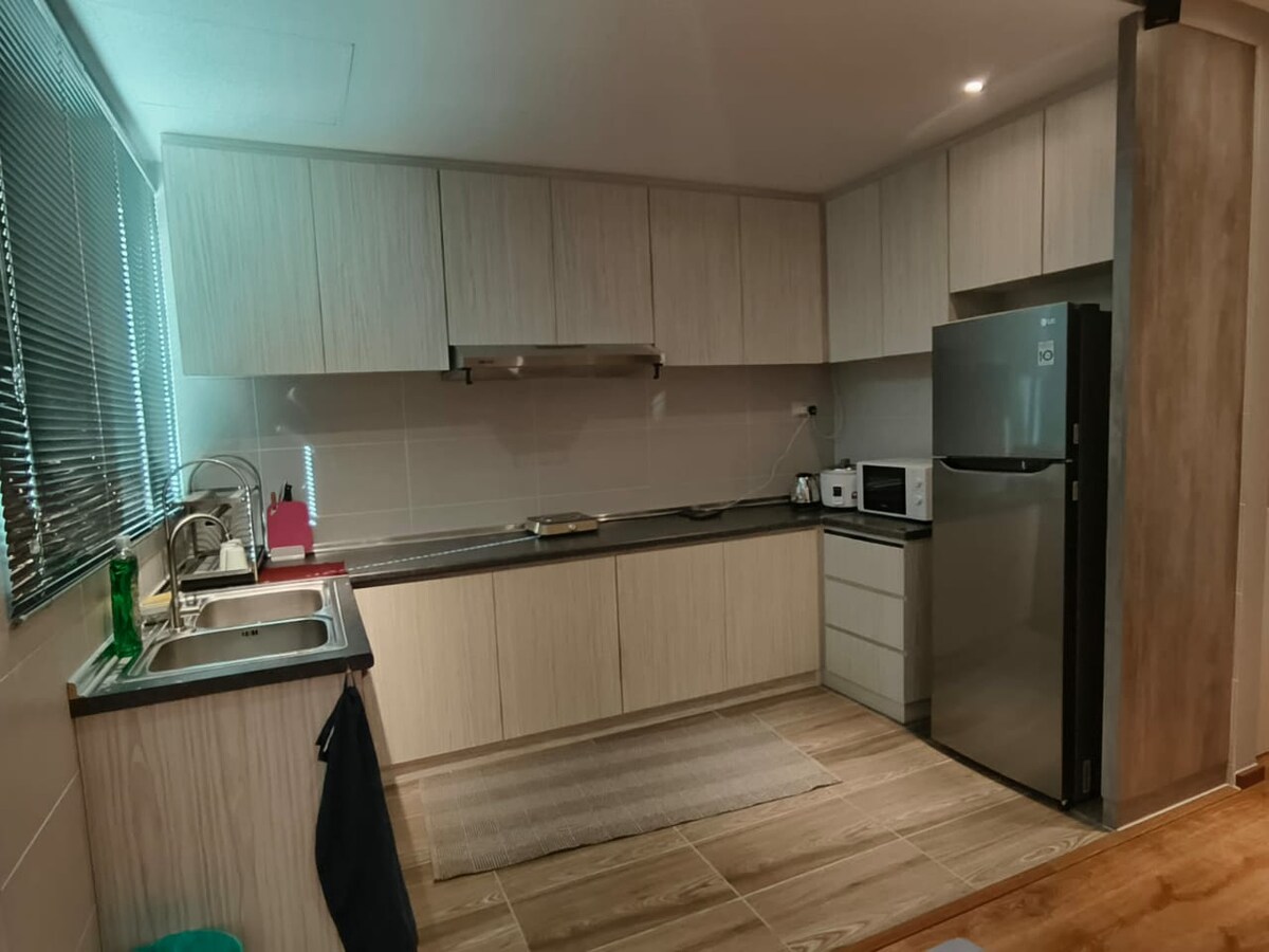 Een schilderachtige ruimte voor 4 personen comfortabel met 2 slaapkamers met een gedeelde badkamer, eethoek, woonkamer en keuken. Perfect voor kleine gezinnen en een kleine groep vrienden! Strategisch gelegen langs de hoofdweg van Kuching, en gelegen in een nieuw gebouwd appartementencomplex met een supermarkt, cafés en restaurants die gemakkelijk toegankelijk zijn zodra je uit de lift stapt. Op minder dan 5 km rijden van het vliegveld (5 minuten) Minder dan 7 km rijden van Kuching Town (15 minuten)