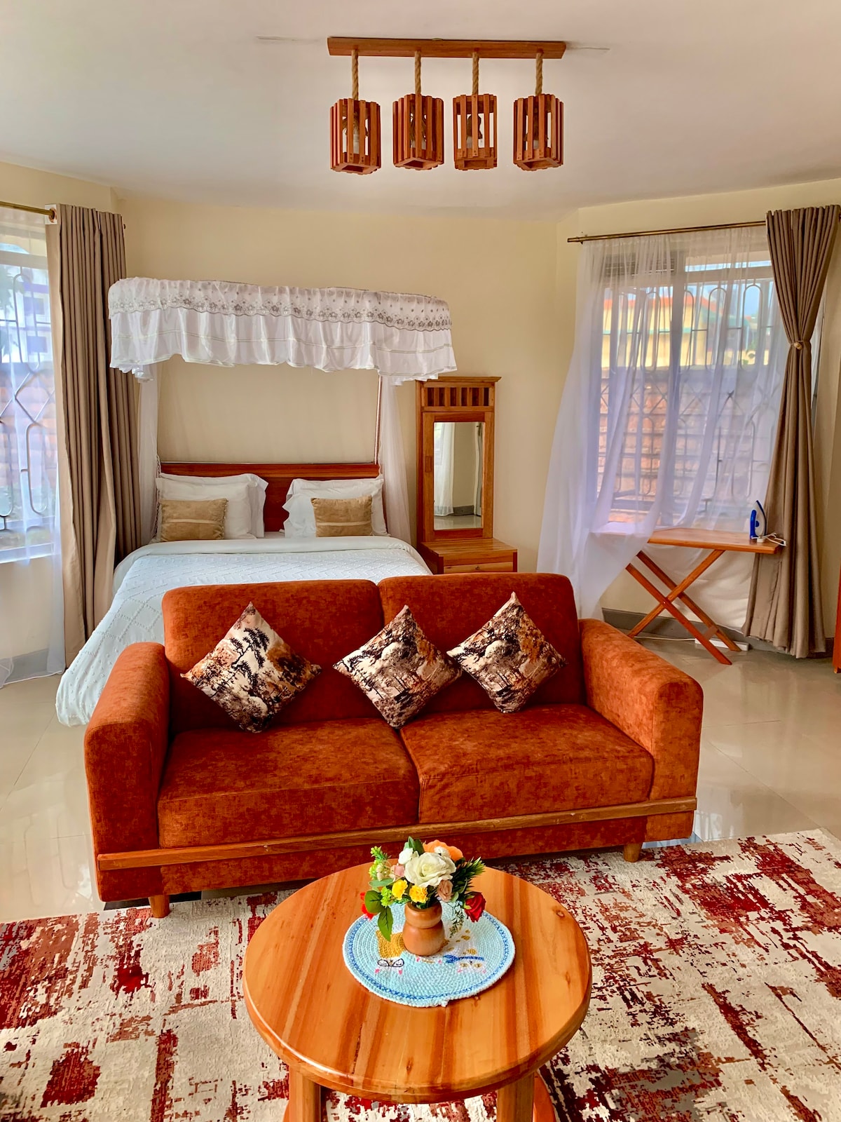 Forget your worries in this spacious and serene space. This own compound studio apartment is located in the heart of Kisii town . Super cozy with a touch of rustic modern themed designs . We also have a workstation for our corporate clients .
