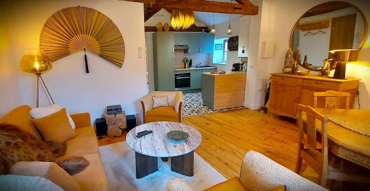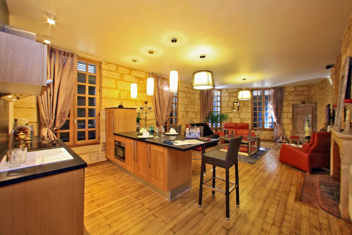 Ons charmante appartement met high-end diensten, gelegen in het hart van de middeleeuwse stad, alleen ontworpen voor 2 personen, is volledig gerenoveerd in 2019: moderne en oude materialen (oude open haard, plafondlijsten, cementtegels, stenen muren...) nu schouders. Deze suite van 66 m2 ligt op 1 minuut lopen van het Maison de la Boétie en de kathedraal van Saint-Sacerdos en dompelt je onder in een chique en verfijnde sfeer. Verplichte schoonmaakkosten 100 € ter plaatse te betalen