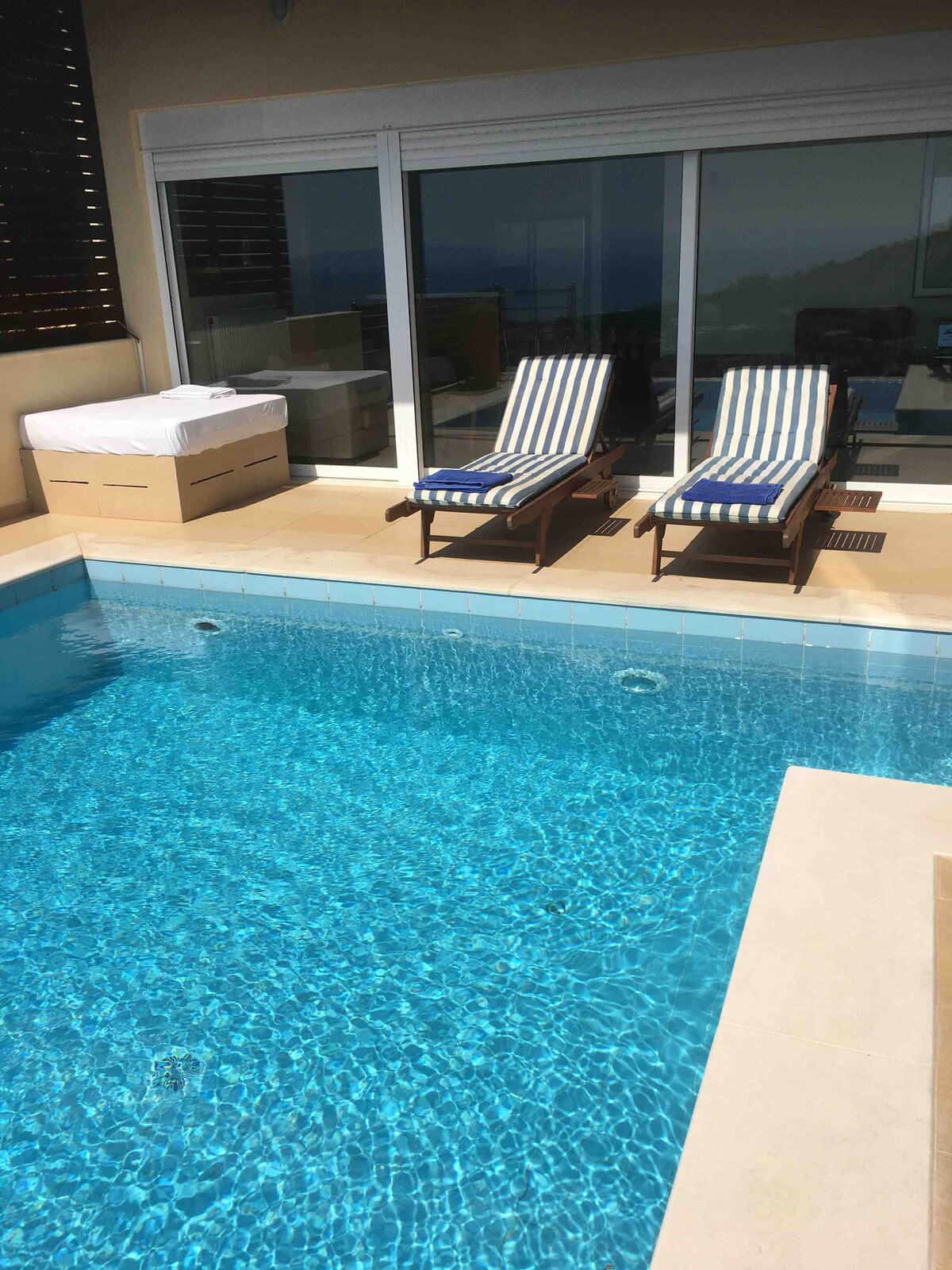 Ons onlangs gerenoveerde vakantieappartement van 45 m2 is stijlvol, minimaal en toch gezellig om je direct thuis te voelen. Het appartement is een oase van wit en palst grijs en is de hele dag gevuld met natuurlijk licht. Ons privéterras van 100 m2 geeft je alle rust die je nodig hebt tijdens je vakantie door te genieten van het prachtige uitzicht op Vouliagmeni 's Bay. Dicht bij stranden, skischool, tennisbaan, basketbalveld, hotels, restaurants, bos, parken, 30' van het centrum van Athene, 30' van de luchthaven van Athene.