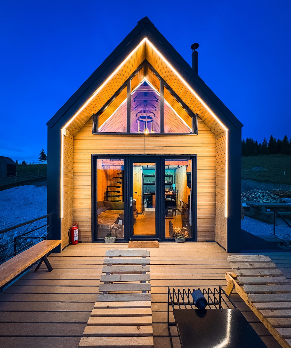 Het chalet omvat de harmonieuze mix van menselijke vindingrijkheid en natuurlijke schoonheid. De architectuur is een eerbetoon aan de aarde, met behulp van duurzaam geproduceerd hout dat je rechtstreeks verbindt met de aardingsenergie van de planeet. Grote ramen laten het zachte, rustgevende gefluister van de wind het chalet binnen, waardoor een serene en rustige sfeer ontstaat. Overdag baadt het chalet in gouden zonnestralen die door de ramen dringen en de ruimte vullen met warmte en levendigheid.