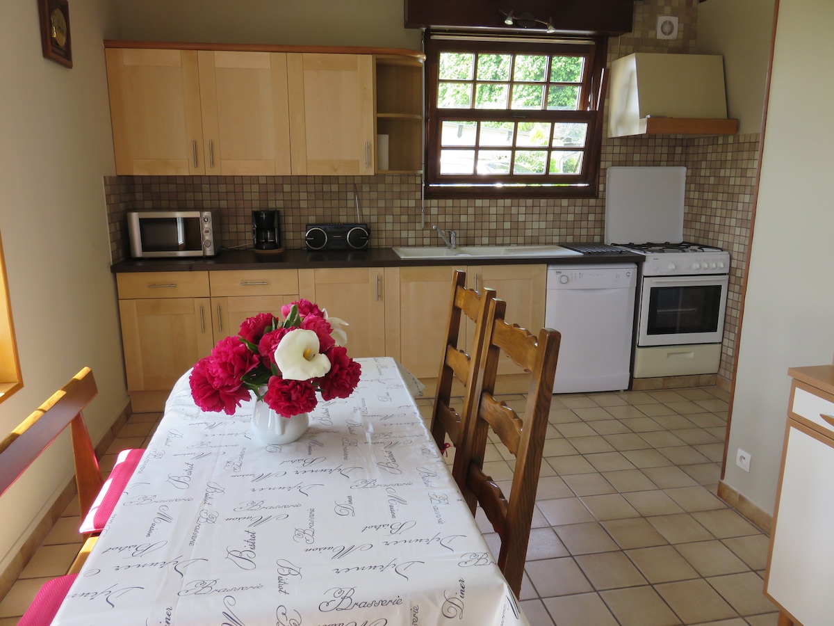 Charmante oude vakwerkbroodoven, gelegen aan de beek het bestaat uit: - Woonkamer met een houtfornuis, - Keuken, - Boven: - Douche-/toiletruimte toegankelijk via een molenladder (zie foto's), -Slaapkamer met een bed van 160x200 met uitzicht op de beek, bereikbaar met een molenladder (zie foto 's), Slaapkamer en badkamer communiceren niet. Tuinmeubilair, barbecue, eigen parkeerplaats, brandhout inbegrepen Let op ander huisje, het stenen huis, op 100m afstand
