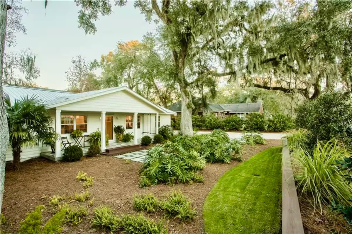“Dit prachtig gerenoveerde huis ligt op een serene 1/2 hectare onder het bladerdak van majestueuze levende eiken en is een verborgen pareltje dat rust en charme biedt. Het full-size, afgeschermde zwembad biedt een eigen oase, perfect voor verfrissende zwemmen van mei t/m oktober. Een schaduwrijke veranda met een hangmat nodigt uit tot rust te komen. Dit rustige toevluchtsoord ligt aan het einde van een rustige straat in het hart van het eiland, op slechts anderhalve kilometer van ongerepte stranden en dicht bij alle topattracties van Amelia Island."