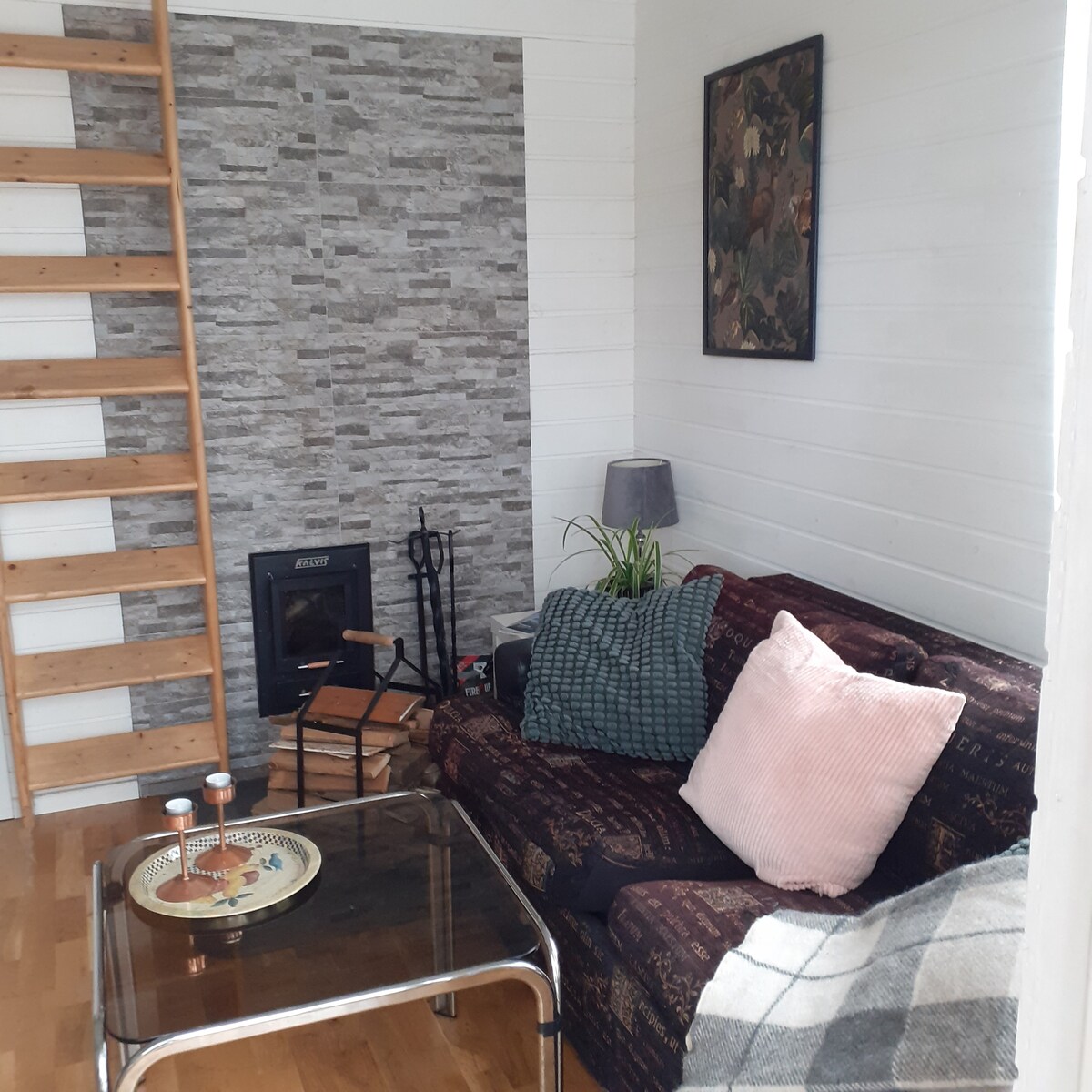 Nieuw gebouwd huisje van 30 m ². 5 min lopen van de haven. - Open plan met keuken en woonkamer in één. - Slaapzolder met 2 één persoons bedden. - De woonkamer heeft een slaapbank. - De keuken heeft een inductie kookplaat en oven. - Volledig betegelde badkamer voorzien van toilet, douche en wasmachine. - Groot terras rondom het huis en eethoek. - Het uitzicht bestaat uit dennen- en bosbessenbos - Schoonmaak niet inbegrepen. - Huisdieren zijn niet toegestaan. - Gasten brengen hun eigen beddengoed en handdoeken mee (kan gehuurd worden voor SEK 150 per persoon)