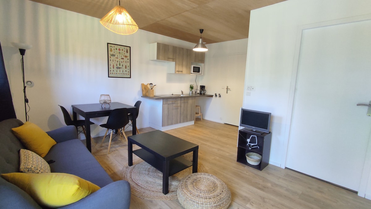 Guesthouse van 33 m², op 20 minuten van het treinstation van Bordeaux, op 15 minuten van de luchthaven Bordeaux-Mérignac en op 40 minuten van het bekken van Arcachon (met directe toegang tot de snelweg A63), ideaal voor een bezoek aan Bordeaux en omgeving. Met zijn uitgeruste keuken (oven, grote koelkast, inductieborden, borden, senseo-koffiezetapparaat), de woonkamer en bank die kan worden omgebouwd tot een tweepersoonsbed, een badkamer met een grote douche met een grote douche en een slaapkamer met een tweepersoonsbed in 160x2m, niets beters voor een succesvol verblijf!