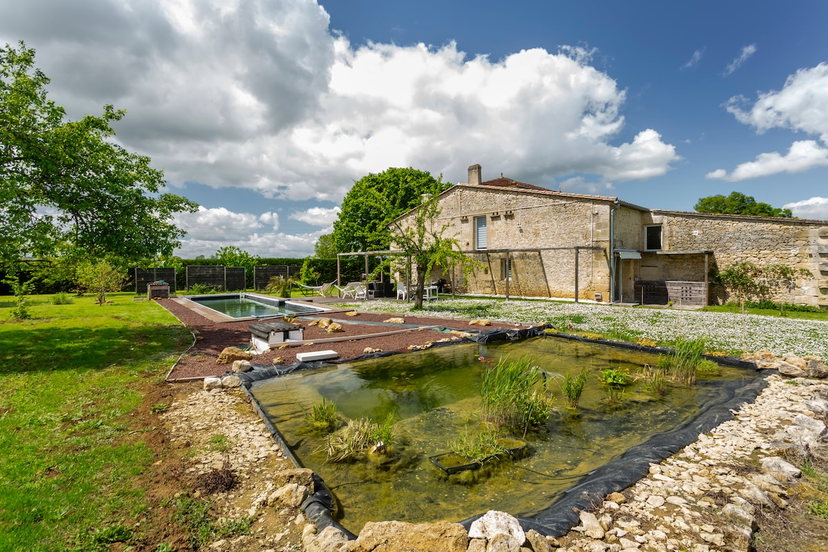 Het gastenverblijf 'Le figuier du clos d' Emilion'grenst aan ons huis, dat volledig is gerenoveerd en smaakvol is ingericht om alle moderne gemakken te bieden. Ze hebben een volledig uitgeruste keuken en een gedeelde tuin met barbecue, plancha en friteuse. De fruitbomen bieden je zonnige of schaduwrijke plekken en we hebben ligbedden geïnstalleerd voor jouw comfort. "Le clos d'Emilion" ligt op 5 minuten van het dorp Saint Emilion en een paar stappen van de Dordogne.