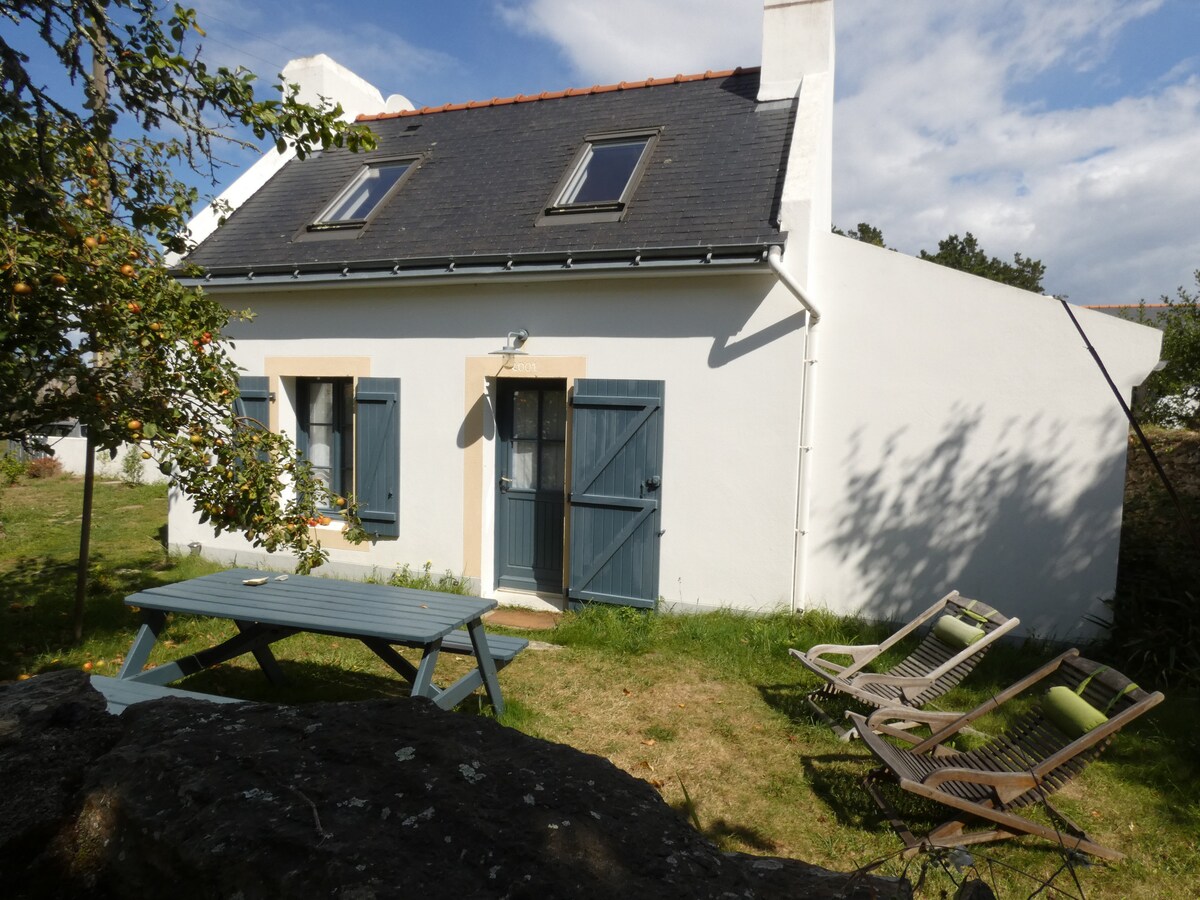 Rustig, in een tuin, met terras en pergola, 800 m lopen naar het strand van Herlin, klein charmant huis. Het dorp Bangor en de mooie zondagmarkt liggen op 2,8 km afstand. Er zijn twee klassieke fietsen beschikbaar, elektrische fietsen zijn optioneel. Lakens en beddengoed aanwezig. Basis boodschappen. Boot welkom op aanvraag