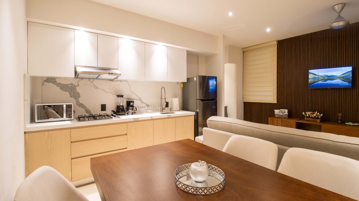 🌴 Modern appartement in het hart van Sayulita. Op slechts 1,5 blokken van het strand en op 2 blokken van het plein kun je overal naartoe lopen — restaurants, cafés en het nachtleven. Geschikt voor maximaal 4 gasten met een volledig uitgeruste keuken, wifi, dakterras en toegang tot het zwembad. Omdat het centraal gelegen is, kan er af en toe straatactiviteit worden gehoord, vooral in het weekend. Perfect voor stellen, vrienden of kleine gezinnen die Sayulita's levendige sfeer willen ervaren.