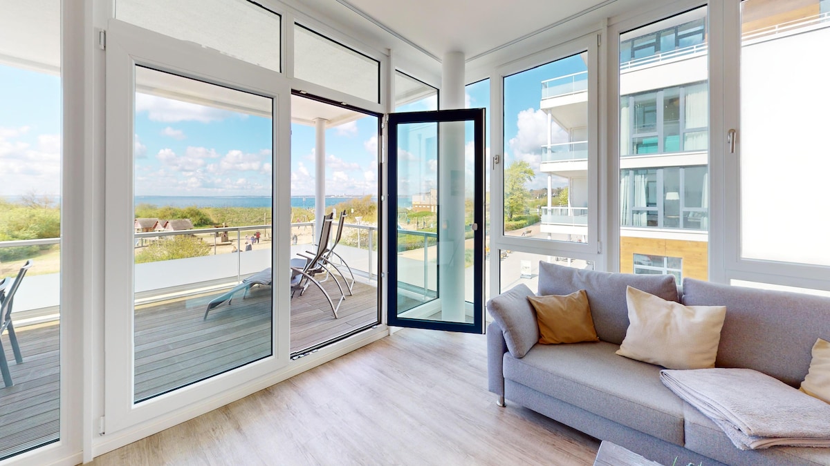 Klein appartement (20 m ²) in de residentie Maritim met een panoramisch uitzicht op de zee, de Trave en het museumschip Passat. Direct gelegen aan Baltische Zee strand en boulevard. Let OP: Helaas is aankomst meestal alleen mogelijk tot 15.00 uur! Boek in het hoogseizoen volledig, dank je!