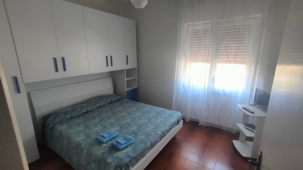 Luminoso e arieggiato open space con vista mare, perfetto per trascorrere una fantastica vacanza in famiglia. E' a soli 2 minuti a piedi dalla spiaggia e dal lungomare e a 5 minuti troverete supermercati e negozi. E' completamente attrezzata: - 1 letto matrimoniale - 1 divano letto a 2 piazze - Lenzuola - Asciugamani da bagno - 2 balconi vista mare - Cucina attrezzata di tutto con microonde e macchina caffè - Aria condizionata - Lavatrice - Smart TV 55" - Kit cortesia