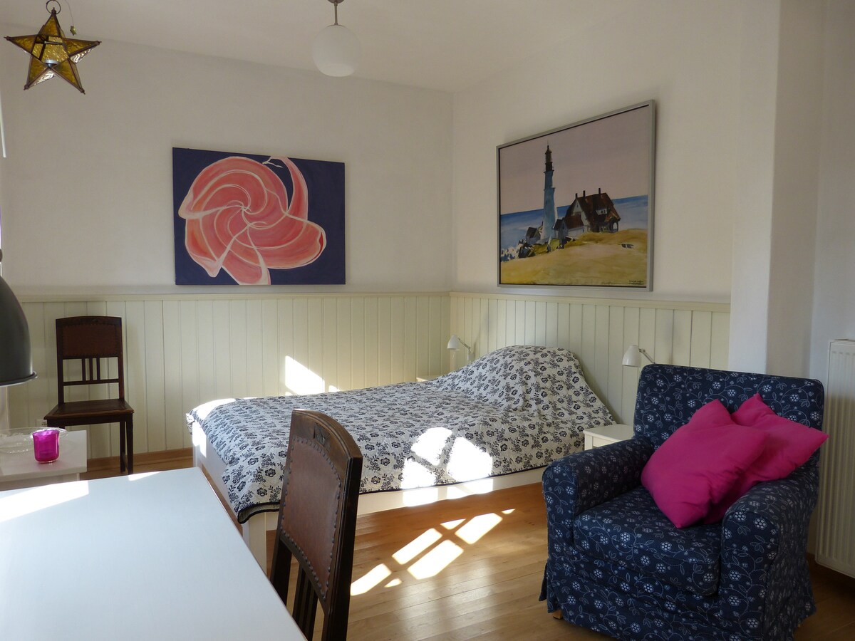 Volledig ingericht klein appartement in een oude boerderij voor één of twee personen met aparte opgang en uitzicht op de cottage tuin. gelegen in een rustige woonwijk, zijn we gemakkelijk te bereiken met het openbaar vervoer (2 kilometer van station en universiteit). De grote kamer (houten vloer) is uitgerust met een klein bureau, stoel, WLAN-toegang, tv, bed (1,40x2,00m) met hoezen, fauteuil en kledingkast . De mini-keuken is voorzien van een fornuis, een koelkast, een magnetron, een waterkoker, een kleine tafel met stoelen, enz. Er is een gelijkvloerse badkamer met douche en wasmachine. Gratis en veilig parkeren naast het huis. Je kunt je eigen terras, stoelen en tafel gebruiken. Neem eerst contact met ons op als je vanaf december wilt reserveren.