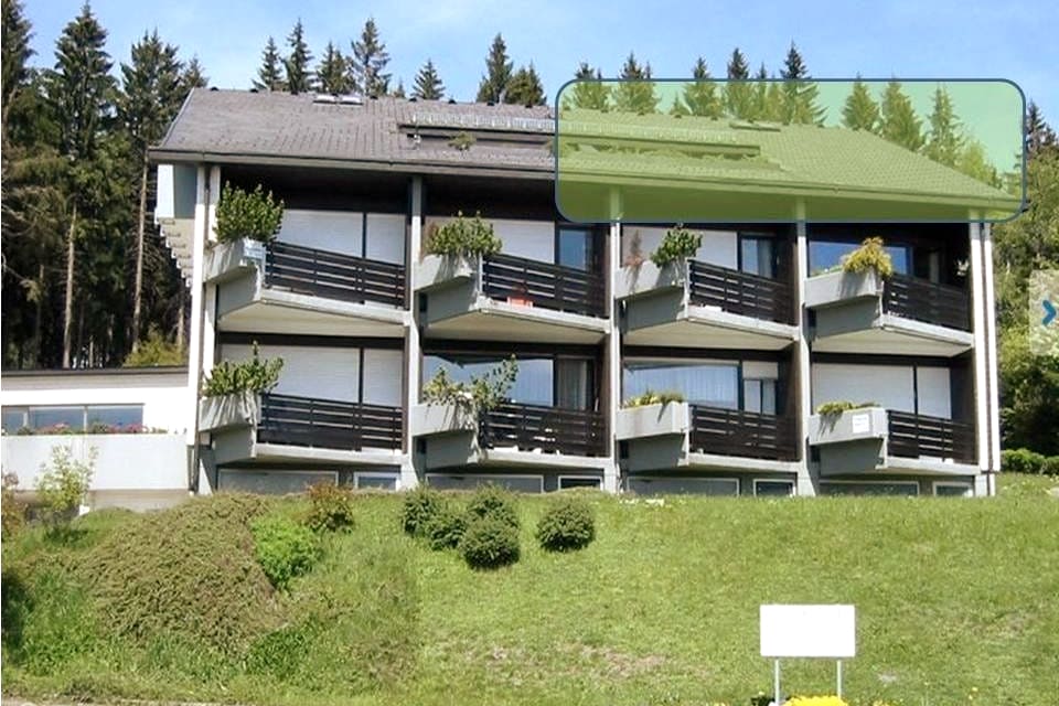 Gezellig appartement (40 m ²) met balkon. Uitzicht op het prachtige Zwarte Woudlandschap. Zuidoriëntatie, dus de hele dag zon! Wandelpaden rechtstreeks vanuit het appartement. Met lift. Parkeerplaats in de ondergrondse garage. Wasmachine is beschikbaar in de waskamer. Broodservice. Zwembad, sauna, tafelvoetbal, tennisbaan, speeltuinen.