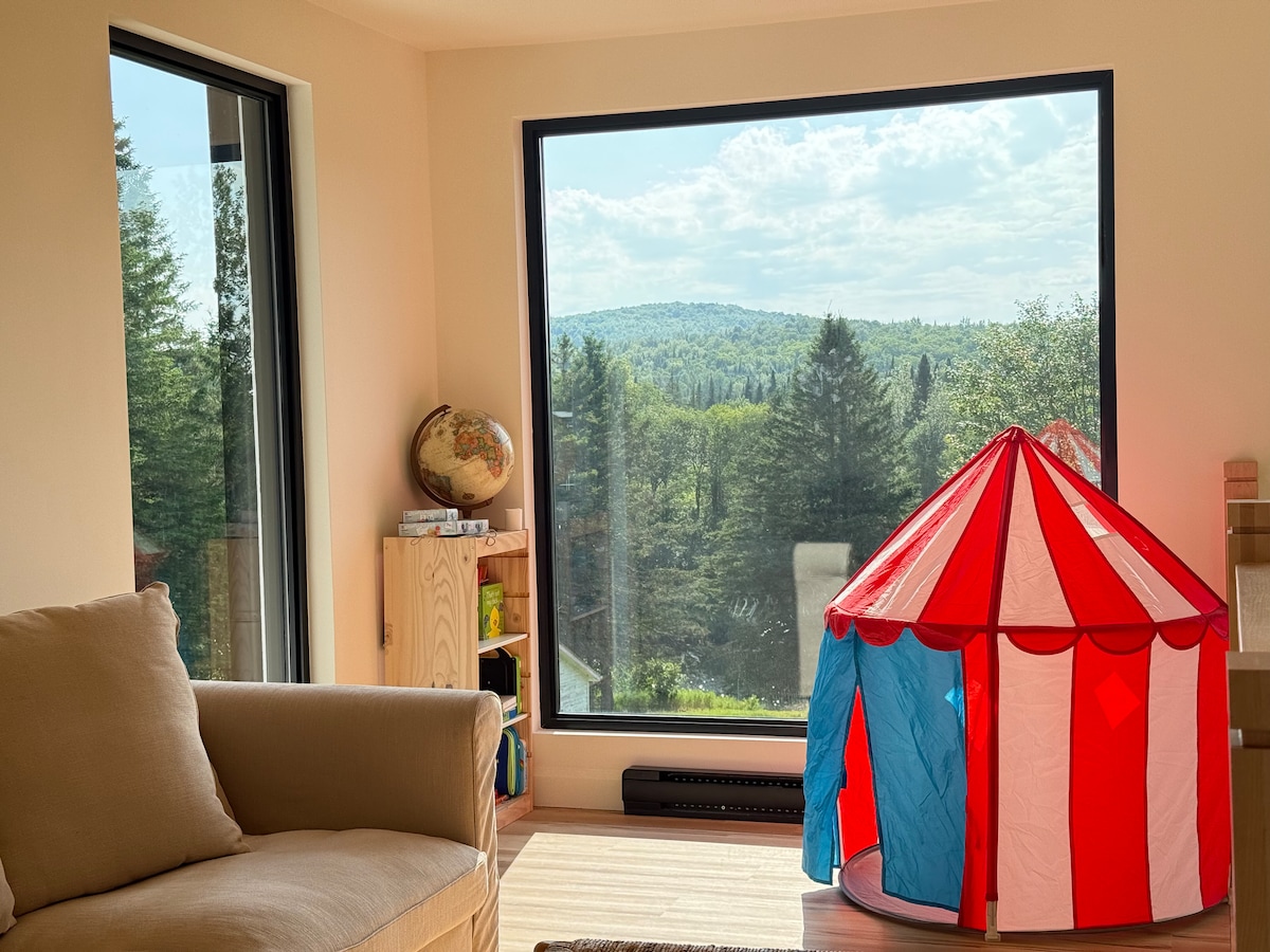 Rifugio is waar je toevluchtsoord kunt zoeken. Een oase van rust in het midden van de natuur omgeven door bergen zover het oog reikt. Le Rifugio biedt je de vrijheid om een authentieke verbinding te maken met de natuur en om te genieten van quality time alleen of met anderen. Zodra u door de deur loopt wordt u begroet in een warme en comfortabele sfeer. Grote ramen bieden een prachtig uitzicht op de omliggende bergen en in de verte zien we het puntje van het meer van Mégantic.