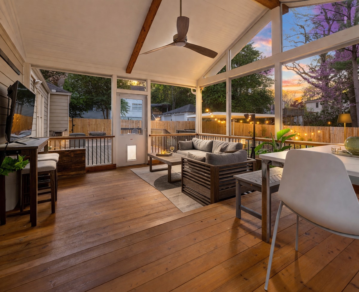 Decatur Home | 85" TV • Heated Porch • Sleeps 9