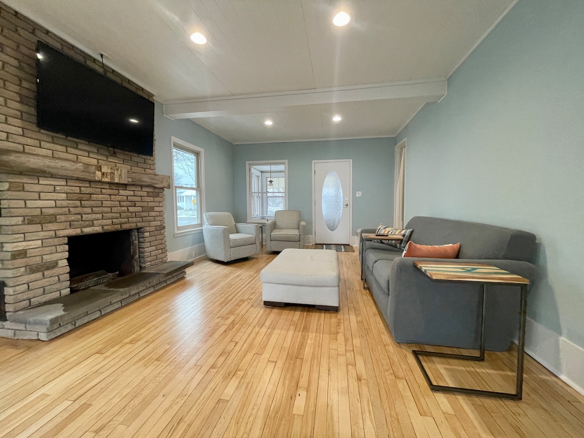 Welcome to our modern 1-bedroom loft, centrally located in the heart of downtown North Branch. Housed in a beautifully restored 1920s building with modern decor, you can admire the Americana Coca Cola mural featured on the exterior of the building. The loft's central location means you're just a stone's throw away from essential amenities, including a quaint café, a health food store, and a women's clothing boutique conveniently located below. Everything you need is within arm's reach.