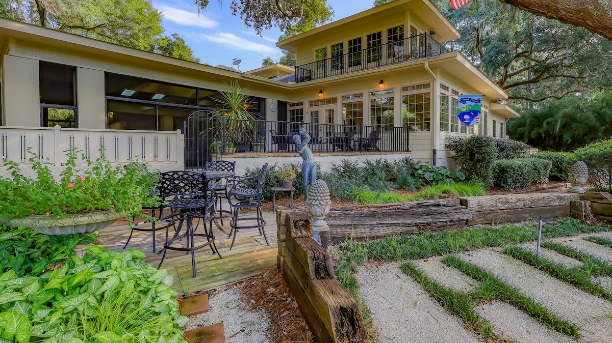 Een gelijkvloers huis uit 2000 SF is in privébezit en ligt op een bebost hoekterrein dat gunstig gelegen is binnen de ingang van Sea Pines Resort. Deze 3 BR, 2BA-woning is in augustus 2020 uitgebreid gerenoveerd, met een uitnodigend Frans geïnspireerde kustinrichting voor een ontspannen en gezellig gevoel. "Sea La Vie" chalet ligt op loopafstand van supermarkten, winkels en restaurants. Een korte rit of fietstocht brengt u naar de privé Beach Club, waar u dineren en bar aan de oceaan, luxe faciliteiten en brede stranden kunt vinden. Bienvenue!
