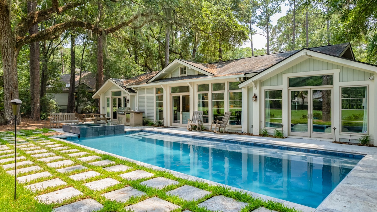 Luxe Hilton Head Home, uitzicht op de golfbaan, met zwembad