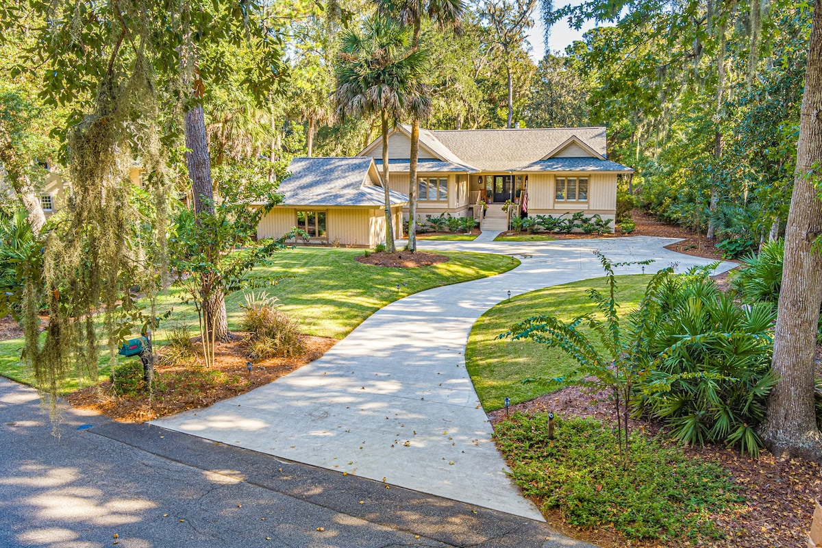 Privately-owned 2000 SF one-level home sits on a wooded corner lot conveniently located inside the entrance of Sea Pines Resort. This 3 BR, 2BA home was extensively renovated in August 2020, with inviting French-inspired coastal decor for a relaxing cozy feel. "Sea La Vie" chalet is within walking distance to grocery stores, shops, and restaurants. A short drive or bike ride takes you to the private Beach Club, housing oceanfront dining and bar, upscale facilities, and wide beaches. Bienvenue!