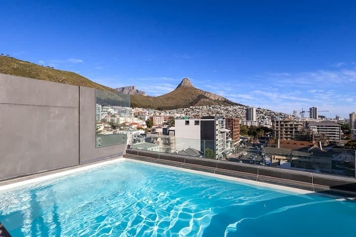 Prachtig penthouse met 3 bedden in het hart van Kaapstad op 16 op Bree. Welkom op de belichaming van luxe en gemak op de 33e verdieping! Gelegen in de iconische 16 op Bree, biedt dit penthouse een adembenemend uitzicht en luxe leven dat je zal ZWIJMELEN! Geniet van een ontspannen barbecue op je eigen balkon, een echte Zuid-Afrikaanse ervaring. Ga naar het 'zonnige' zwembaddek en de fitnessruimte buiten op de 27e verdieping. Het gebouw heeft ook een eigen gedeelde werkplek. *Nul stroomuitval in dit gebouw.