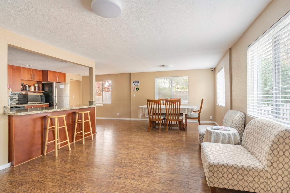 Onlangs gerenoveerd huis, vrede in gezellige en stedelijke gebieden, lopen naar Lake Sammamish State Park voor wandelpaden, in de buurt van de I-90 naar Seattle. Dicht bij Issaquah Highland. Costco en Fred Meyer liggen op twee minuten rijden. Er zijn twee complete badkamers, een keuken en een eethoek met uitzicht op de bergen, prachtige zonsopgangen en zonsondergangen, plus een buitenruimte met een barbecue. Geniet van wandelen, hardlopen! De internetsnelheid is 220 Mbps (een andere AirBnB NAAST DE DEUR, zoom in op de kaart om te bekijken :)