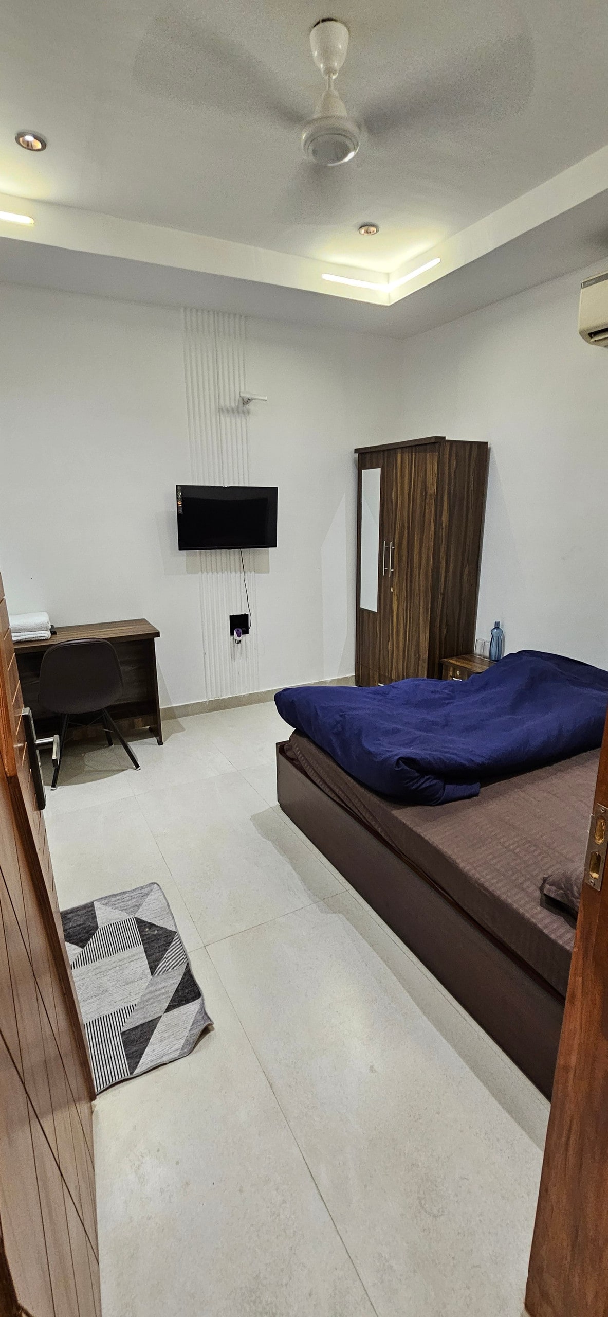 Ruim 2BHK appartement met keuken in Greenfields Colony Faridabad – perfect voor gezinnen, groepen Koppels en bruiloftsgasten. Geniet van 2 slaapkamers, een eenpersoonsslaapbank, airconditioning in alle ruimtes, 2 badkamers, woon- en eetkamer, volledig uitgeruste keuken, wifi, inverter back-up. Veilige, rustige omgeving met gemakkelijke toegang tot metro, markten en Delhi NCR. Volledig privéruimte — geen gedeelde ruimtes. Parkeerplaats voor het pand. Boek nu je gezellige verblijf!