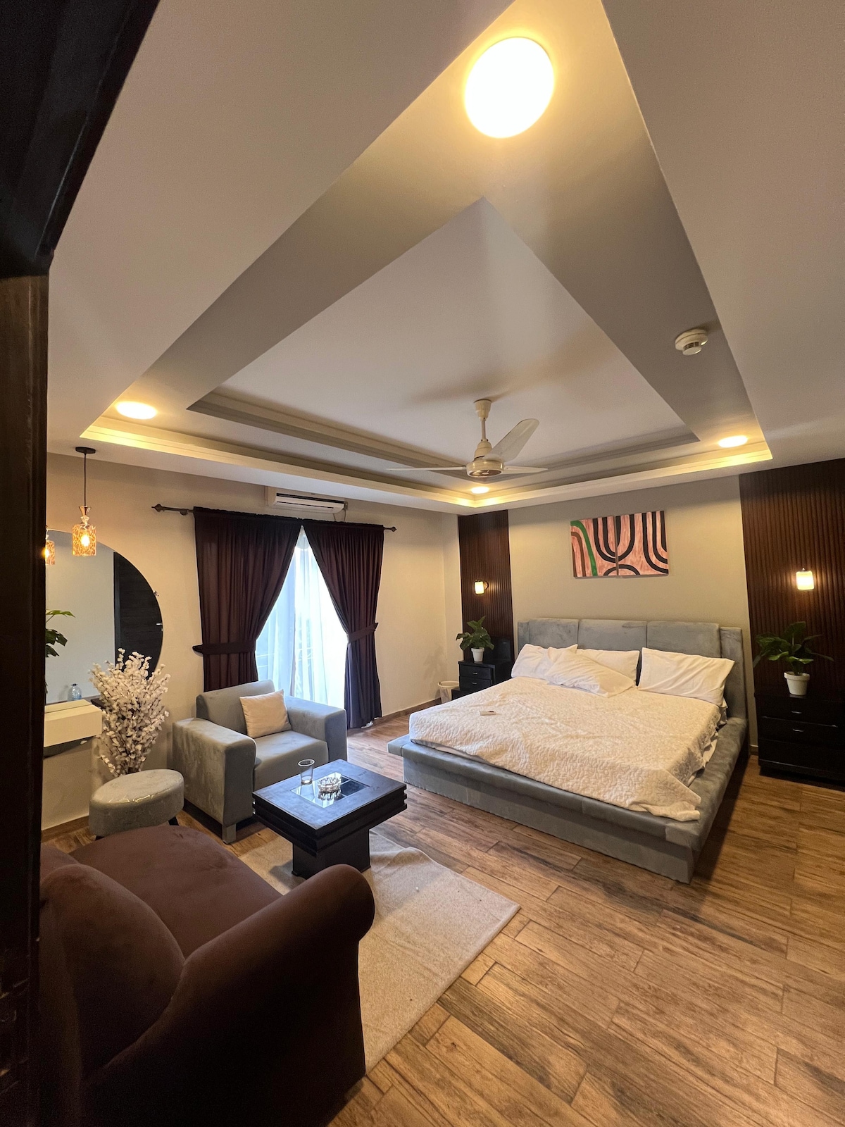 Een 1700 vierkante voet 2-slaapkamer boetiekappartement gelegen in het serene hart van Bahria Town. Dit zorgvuldig samengestelde huis ligt op een verhoogde verdieping, baadt in natuurlijk licht en biedt zowel op het noorden als op het zuiden gericht open uitzicht met winkels en restaurants op loopafstand. Ontworpen voor comfort en elegantie, is het ideaal voor gezinnen, koppels, zakenreizigers of iedereen die op zoek is naar een rustig maar goed verbonden verblijf in Islamabad.