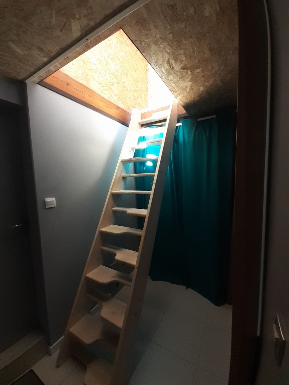 studio boven, gerenoveerd en voorzien van airconditioning, slaapkamer met tweepersoonsbed, woonkamer met converteerbare bank, tv, keuken ( oven , magnetron, koel-vriescombinatie...), badkamer met toilet, wasmachine, stofzuiger... Niet-roken accommodatie, geen huisdieren De accommodatie heeft een onbeveiligde trap, dus het is niet geschikt voor baby 's , geen babyspullen. Het appartement is geconfigureerd voor maximaal 3 personen, inclusief kinderen.