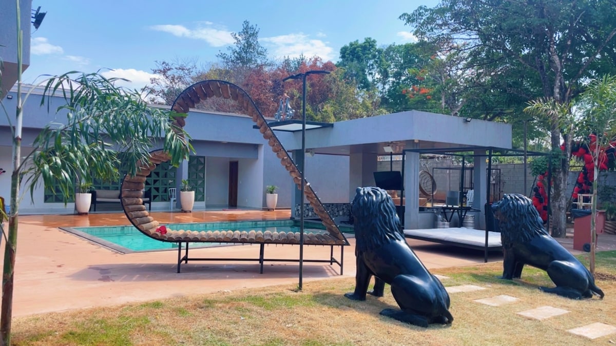 Chácara Piscina Climatizada e Lareira - 5’ Goiânia