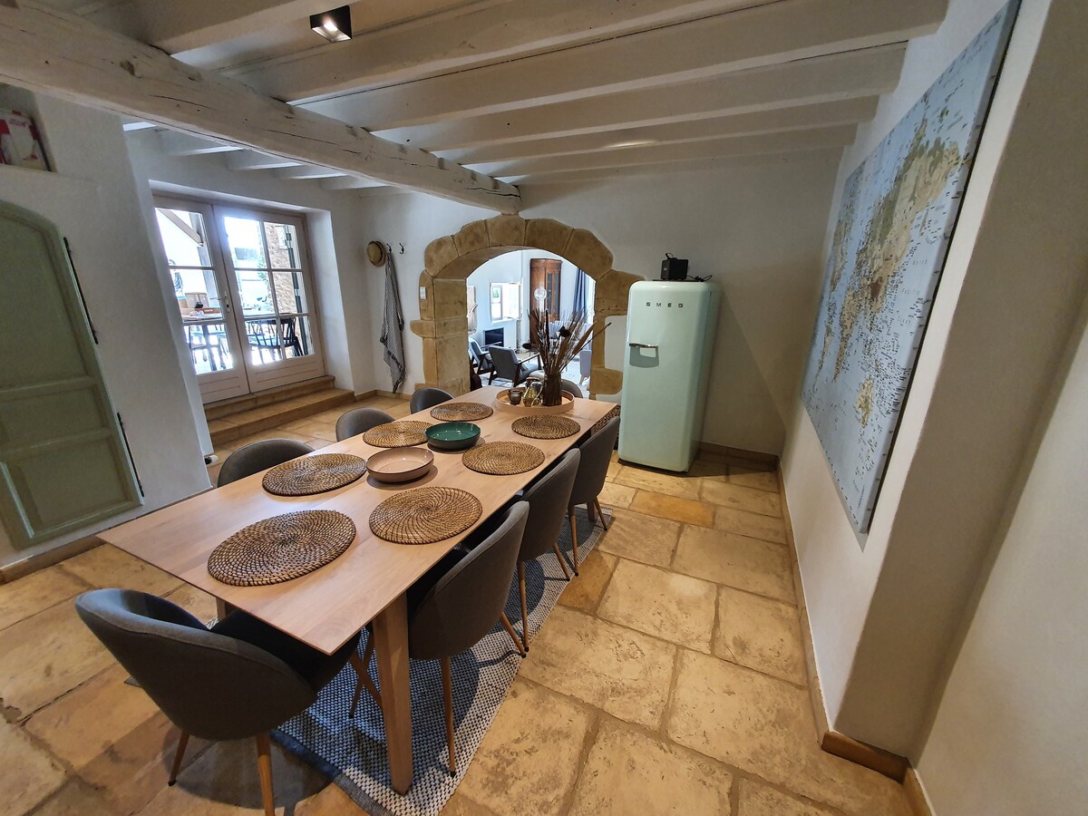 Huis van karakter (voormalige prioritair uit de 17e eeuw) met intieme en romantische charme, aan de kust van Mâconnaise. De accommodatie is omgeven door wijngaarden, in een erfgoeddorp, met een ongeëvenaarde charme. De accommodatie bevindt zich op de wijnroute en op het circuit van de Romaanse kerken. De accommodatie is uitgerust met alles wat je nodig hebt voor een verblijf vol charme, ontdekking en rust.