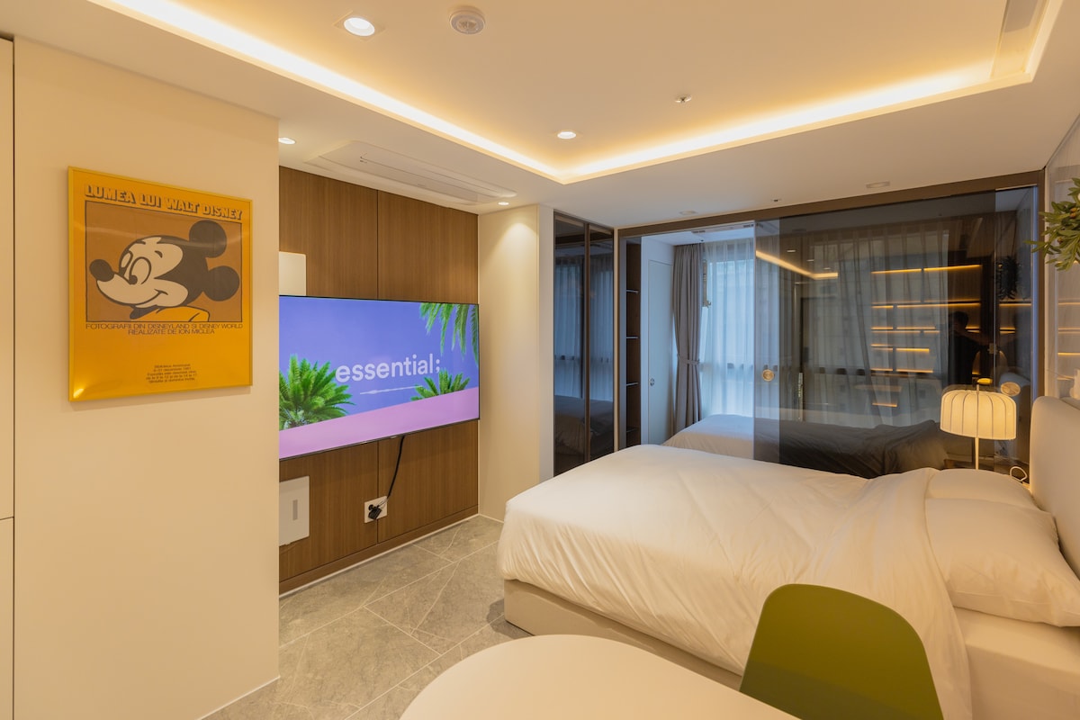 Deze ruimte ligt in het hart van Seoul en heeft zowel zijn locatie als stijlvolle stijl. Het is een nieuw gebouw in de tweede helft van 2023 en is een high-end residentiehotel. Er is een wasmachine en droger, een queensize bed en een slaapbank en een hoogwaardige keukenarmaturen met een waterzuiveraar en een koffiezetapparaat. De ruimte is ruim en de inrichting is luxe, dus we hebben geregeld dat je kunt genieten van de ultieme ontspanning. We doen ons uiterste best om ons tijdens je verblijf comfortabel te voelen.