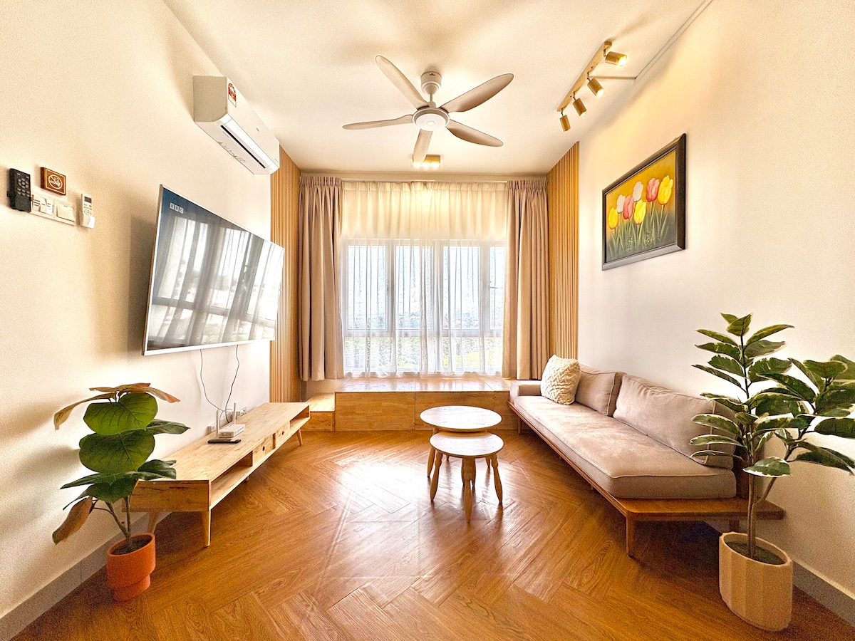 Enjoy a comfy retreat in this suite. Muji feel studio apartment with private bathroom, kitchenette and workplace suitable for couples and family. Renovated with wooden Tatami design, high end finishing and closets.A lovely space to unwind and relax after a busy day whether it is work or play. Less than 20 mins drive to KLIA / KLIA 2 / Mitsui Outlet. Walking distance to variety of eateries and convenience shops such as 711, Starbuck, laundry shop, Thai food and even 24H Clinic and mamak stall!