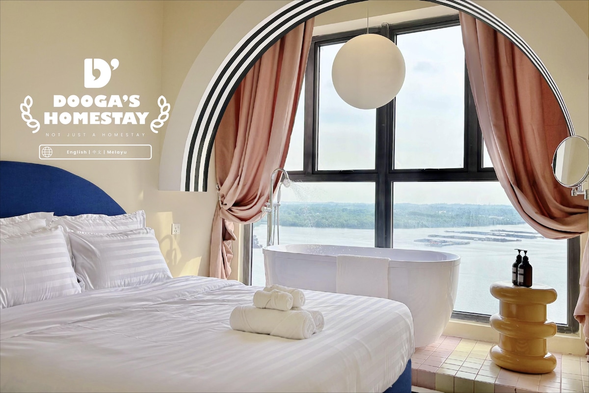This unique Seaview Loft Homestay has a style all its own. It's located in R&F Princess Cove Premium block within walking distance from JB Custom. You have convenient access to all the exciting attractions in R&F mall downstairs, such as trendy cafes, night bars, massage, restaurants, Jaya Grocer etc. Our cozy and modern loft unit provide a peaceful retreat and relaxation. Whether you're seeking a family vacation, or business, this Seaview loft promises an unforgettable experience.