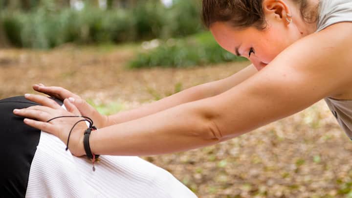 Een yogasessie gericht op asana, pranayama en mantra om het evenwicht en welzijn te verbeteren.