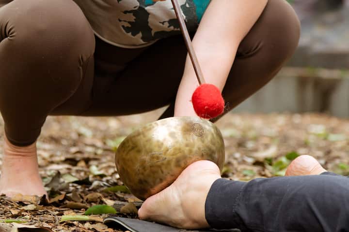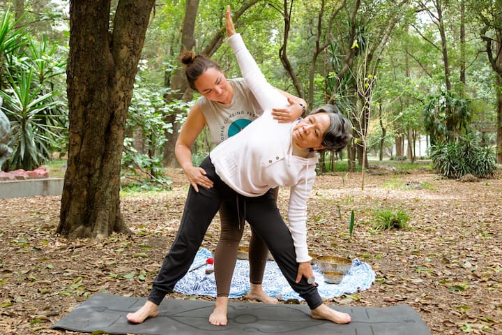 Een yogasessie in het hart van Chapultepec Park met rustgevende geluidsgenezing en Ayurvedische technieken.