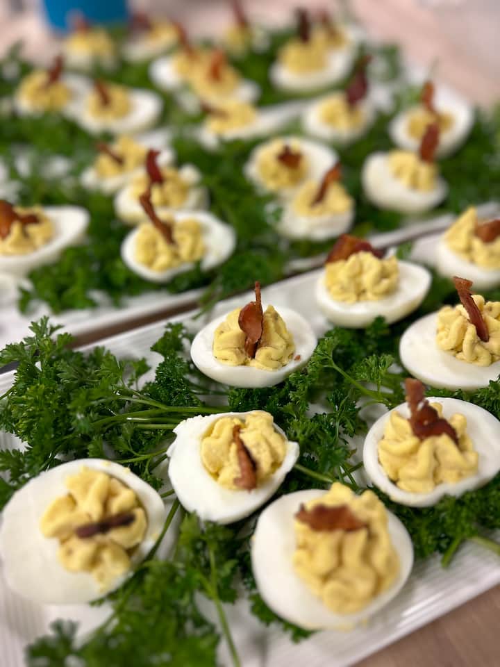 Geniet ontspannen van hapjes terwijl we salade, twee hoofdgerechten en drie bijgerechten voor zelfbediening bereiden en klaarzetten. Dessert geserveerd na de maaltijd terwijl we opruimen.