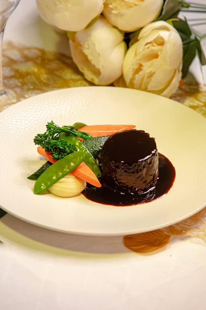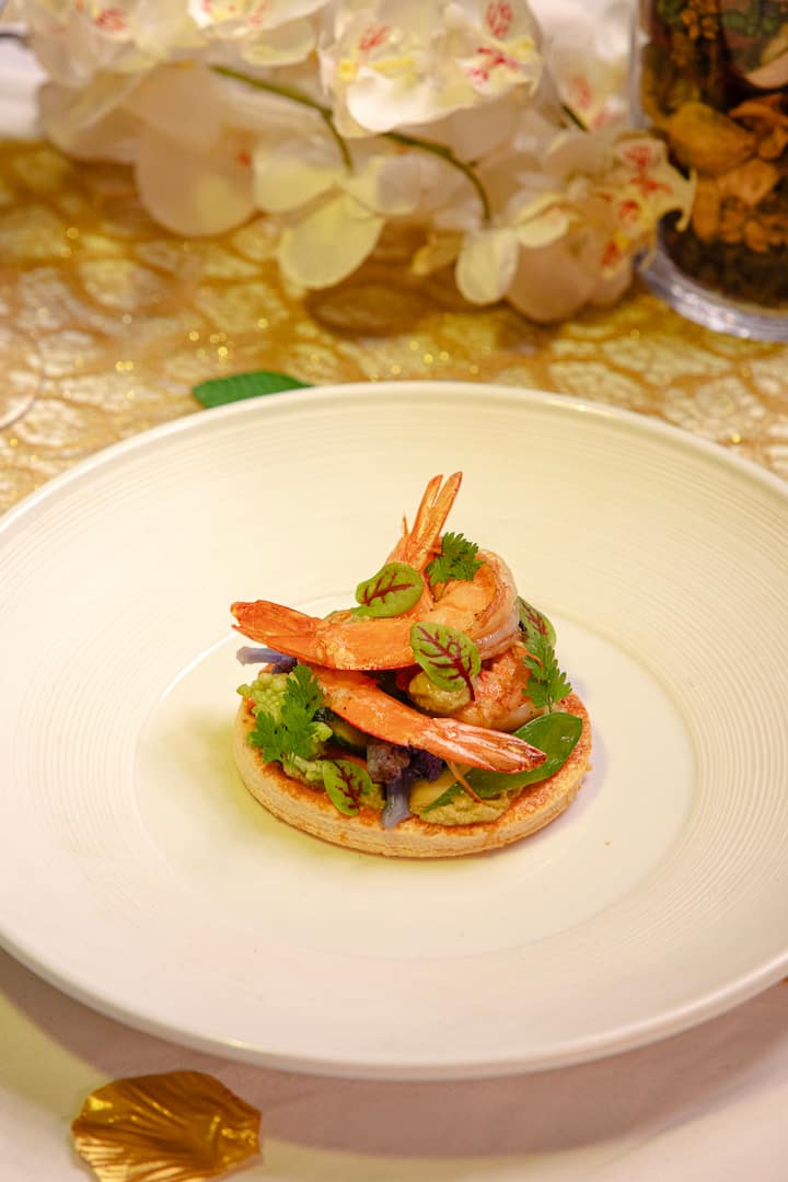 Het menu bestaat uit hummus van cowpea met crudités, gegrilde peperkruiden, zeebrasemcarpaccio met mango en yuzu, seizoenssalades, gerechten zoals Beef Wellington en coulibiac, evenals desserts om te delen, zoals rode fruit charlottes, exotische fruittaarten en Paris-Brest.