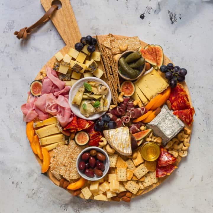 Ik bied een selectie van oude kazen, ambachtelijke charcuterie vergezeld van zelfgemaakte specerijen.