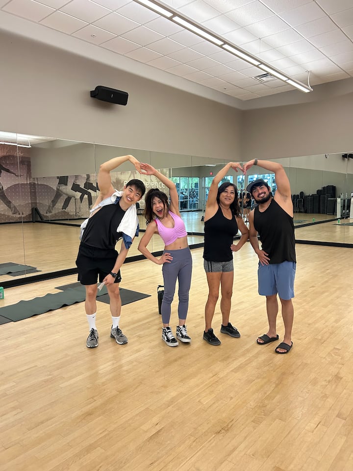 Ik heb groepsfitnessoefeningen gegeven voor LA Fitness en Gold's Gym in verschillende steden.