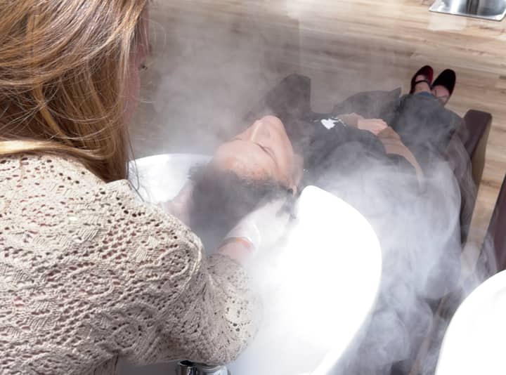 Deze sessie omvat een aromatische hoofdhuidmassage met botanische infusies om het haar voor te bereiden op maximale glans en gezondheid. Technische precisie zorgt voor een kenmerkende afwerking die er moeiteloos, verheven en gezond uitziet.