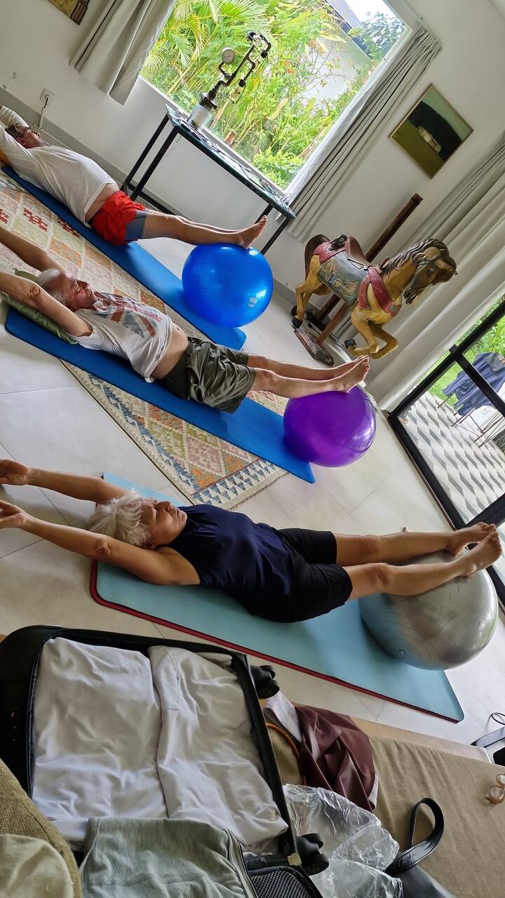 Ik heb mat en reformer pilates gegeven bij Sunset Pilates Legian.