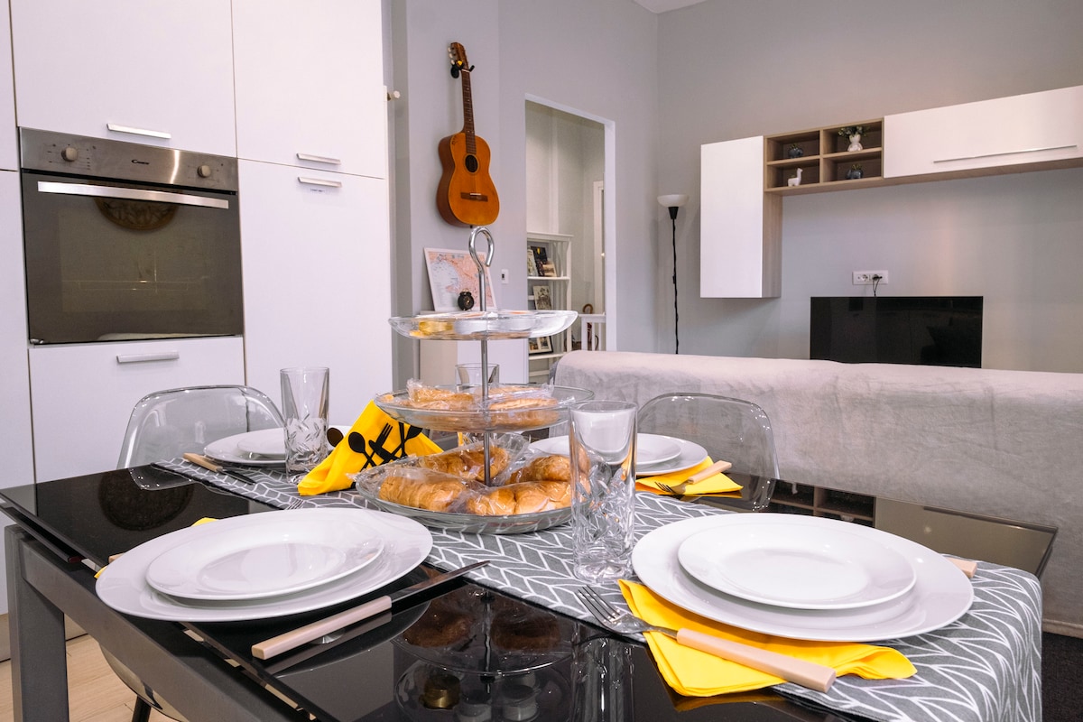 Welkom in het appartement met een exclusief terras met een prachtig uitzicht op de historische Porta Soprana Licht, onlangs gerenoveerd en gelegen op de 2e verdieping met lift in een historisch gebouw Je vindt er een Dorelan-matras met topper, een volledig uitgeruste keuken, een ruime badkamer en alle comfort. Centraal gelegen, waar het oude het nieuwe ontmoet, zul je genieten van de authentieke ziel van Genua: het historische centrum, kunst, bars, restaurants en openbaar vervoer We verwelkomen je graag 💚