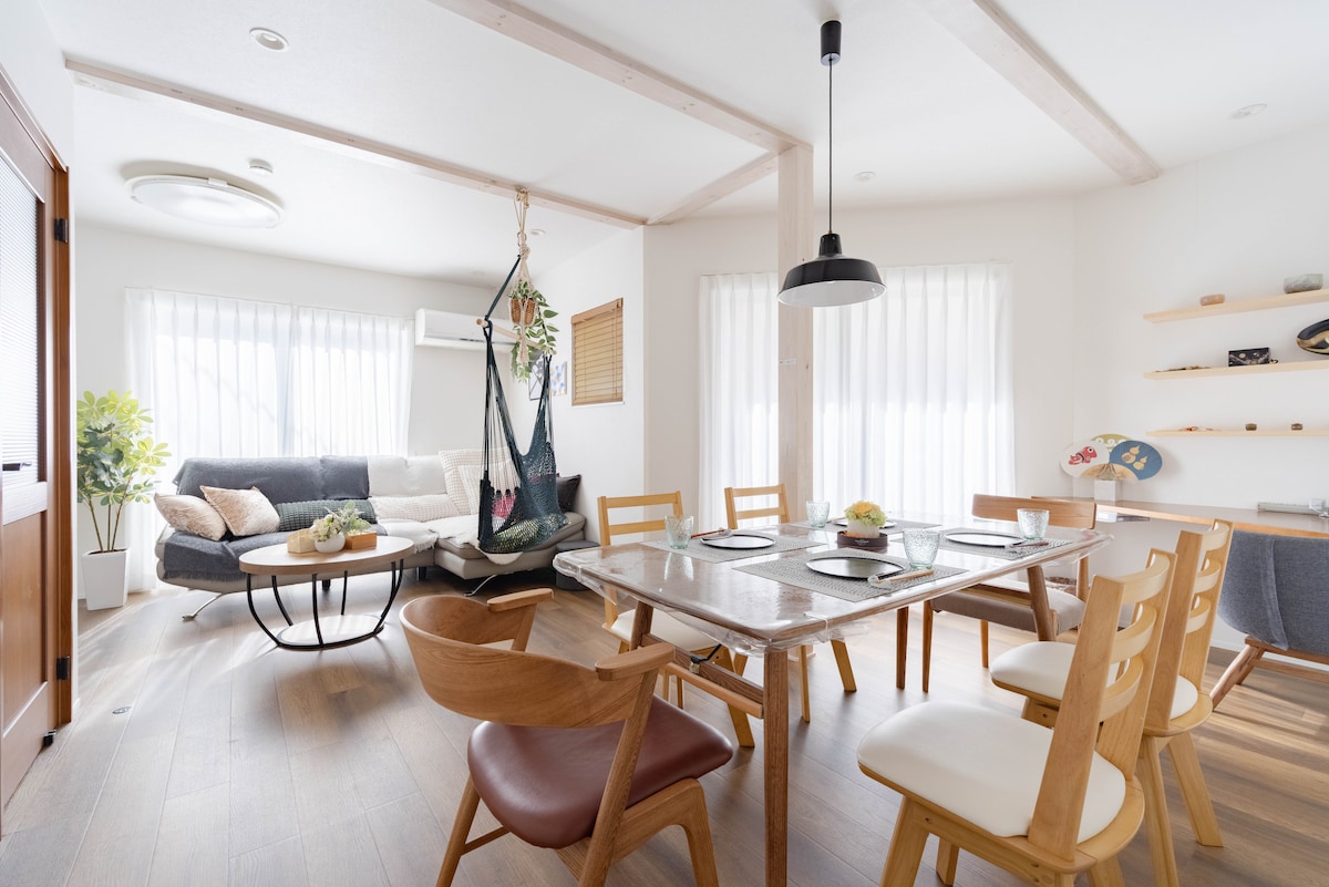 Experience a unique blend of Scandinavian and Japanese design in this renovated 86-year-old, two-story home in Sangenjaya. With 80㎡ (900 ft²) of bright space, a 3-meter ceiling, and a dramatic 7-meter ceiling above the kitchen, it’s perfect for families and small groups. Just 6 minutes to the station and 4 minutes to Shibuya, the house offers the perfect mix of calm and city convenience in one of Tokyo’s most beloved neighborhoods, Sangenjaya.
