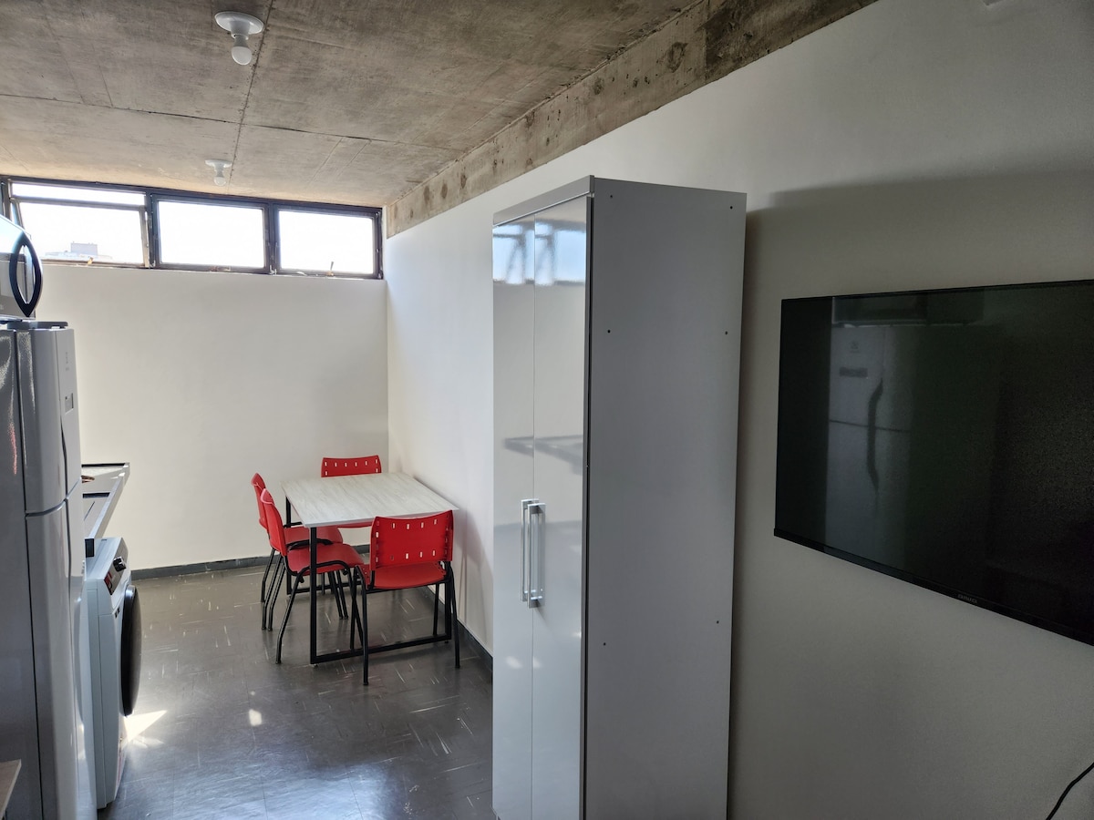 Penthouse met één slaapkamer in het centrum. Airconditioning in de kamer. Plafondventilator in slaapkamer en woonkamer. Exclusieve penthouse open ruimte. Zeer uitgeruste keuken. Wasmachine en droger, Smartv. Bedden kunnen worden ingesteld voor stellen of singles. In het centrum van Sete Lagoas, in de buurt van Lagoa Paulino (belangrijkste lagune van de stad) Zeer vertrouwd gebouw, vierde verdieping met lift. Het heeft een parkeerplaats, beschikbaar bij voorafgaand overleg. We hebben nog een appartement in hetzelfde gebouw.