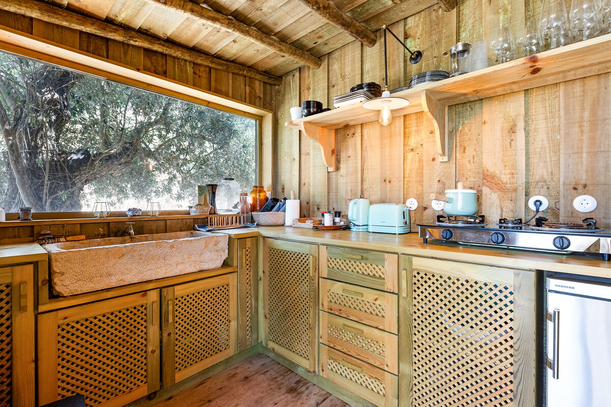 Welcome to a place where time slows down and nature takes over completely. Nestled in the hills of the Arrábida Natural Reserve — one of the most breathtaking landscapes in all of Portugal — this wooden cabin was designed for families who deserve a lasting memory. Built from warm natural wood, the cabin breathes in harmony with the Mediterranean forest that surrounds it. Wake up to birdsong, breathe in the pure mountain air, and end each evening soaking in a private bathtub under an open sky.