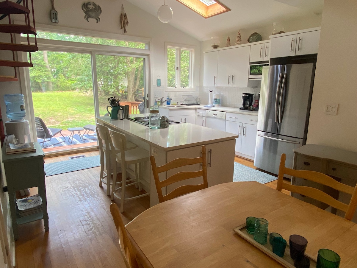 Beautifully restored 1928 cottage w/ open floor plan & vaulted ceilings provide a homey vibe Enjoy Historic Annapolis Towncenter in your backyard Jack & Jill bath separates queen bedrooms. Comfortable full-size daybed = 3beds Hardwood floors adorn common areas Gourmet kitchen w/ extensive granite countertops, breakfast bar & amenities Dining table & chairs, extra-large comfy couch nestled between 2 chaise lounge chairs, 55" Roku tv, electric FP, towels, linens, pvt laundry, and more!